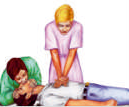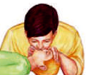 - obejmując szczelnie ustami usta poszkodowanego wdmuchuje powietrze